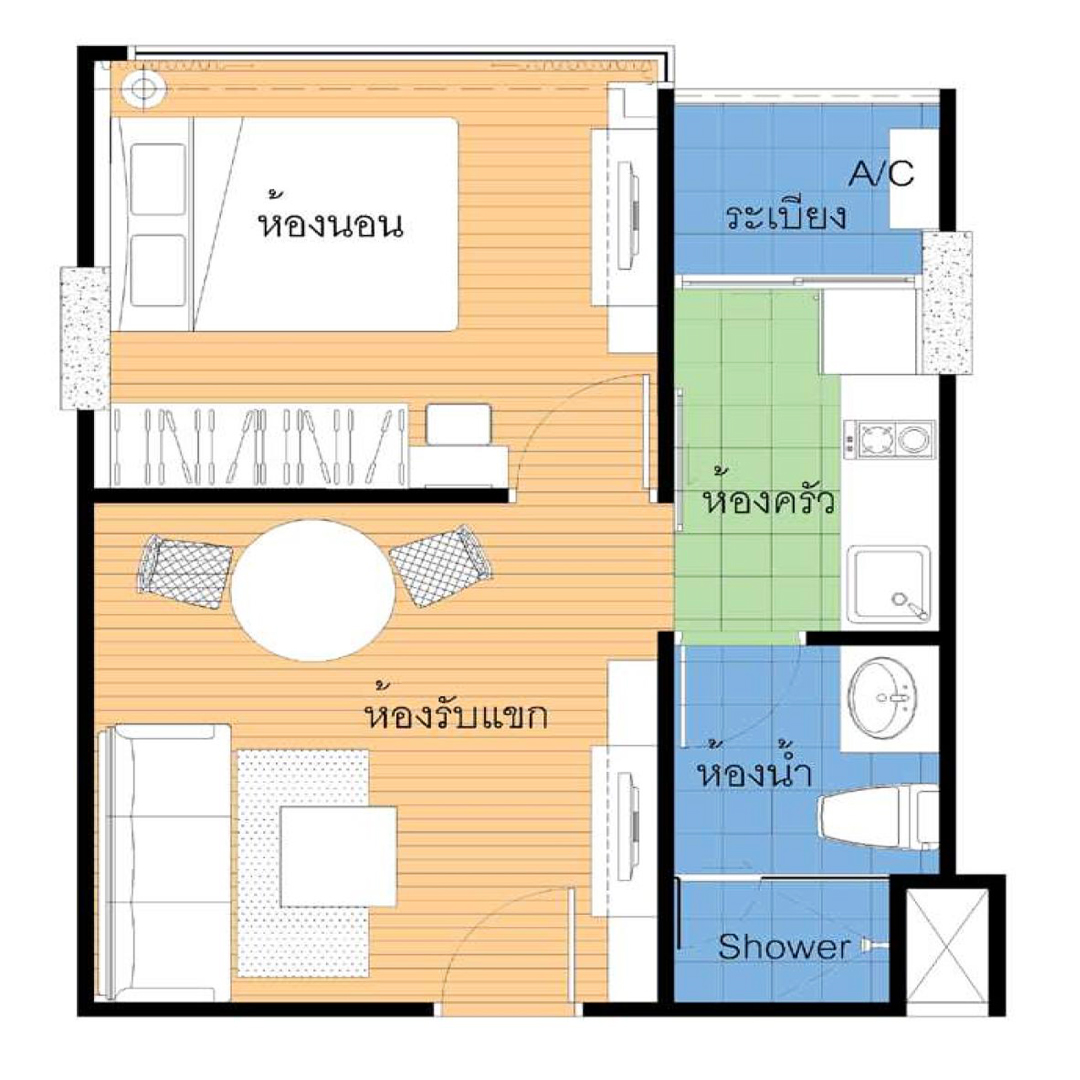 >ห้องสวย กว้าง กั้นห้องนอนเป็นสัดส่วน