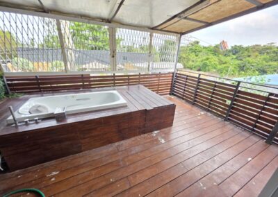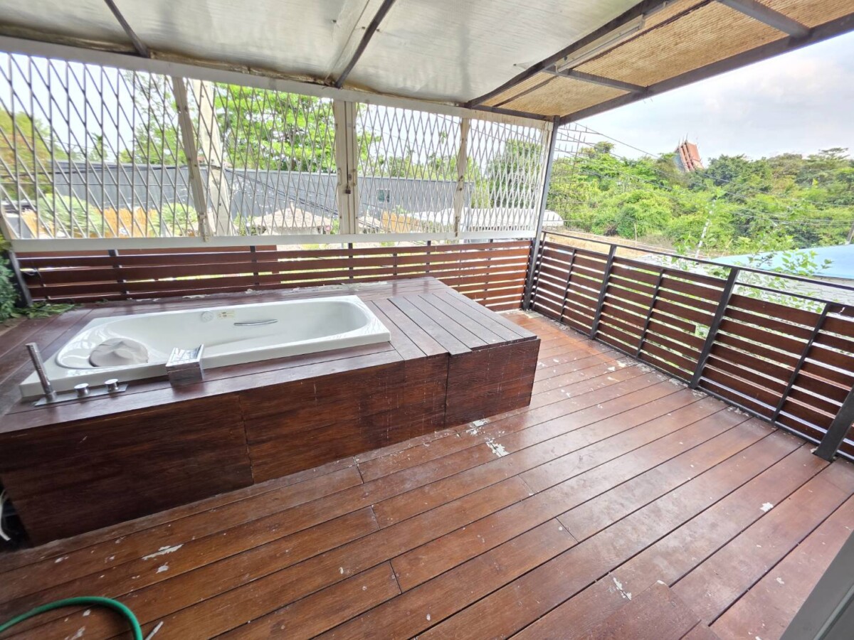 – ห้องนอนใหญ่ต่อเติมระเบียง พร้อมอ่างอาบน้ำด้านนอก