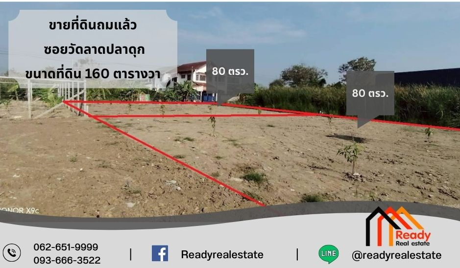 ขายที่ดินถมแล้วยกแปลงและแบ่งขาย ซอยวัดลาดปลากดุก 160 ตารางวา